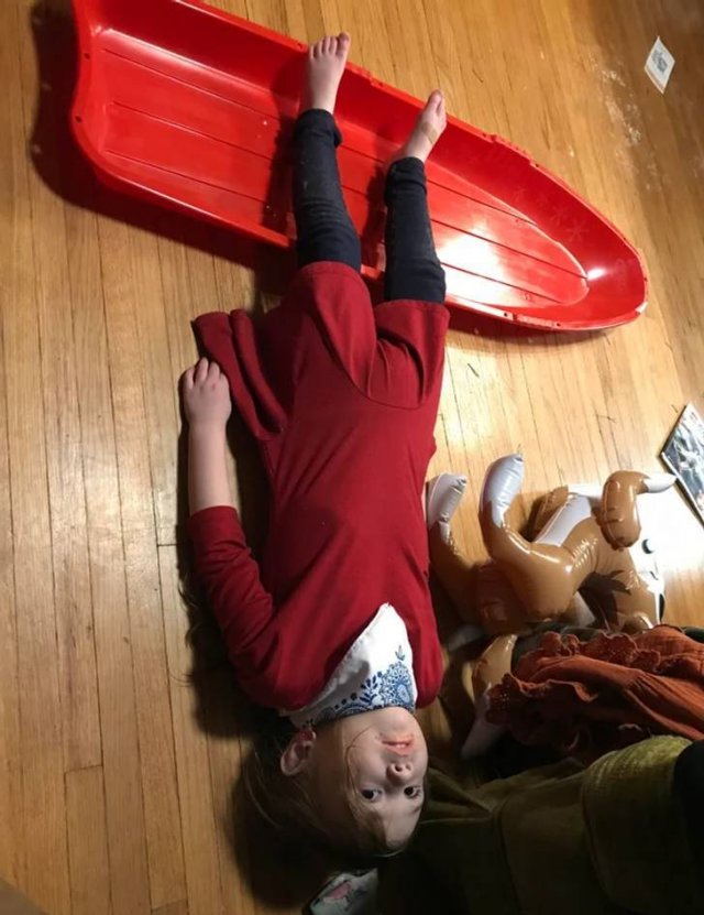 “My daughter trying to hide when she’s supposed to be in bed.”
