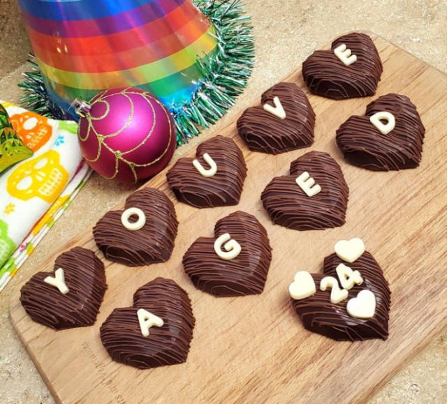 “Chocolate-filled hearts for my husband’s twenty-fourth birthday today!”