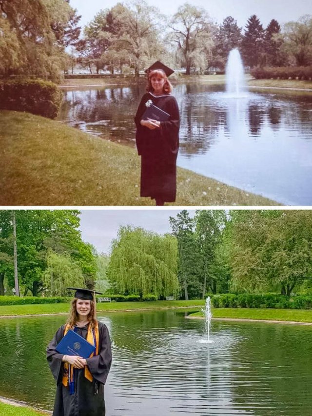 “My mom (class of 1984) died just months before she could see my sister (2018) graduate, but we replicated the photo.”