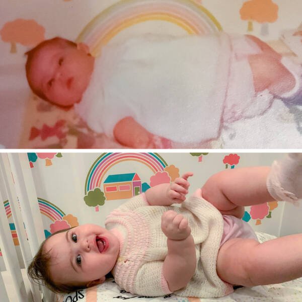 “Me: 1979, my daughter: 2020. We are both wearing the same sweater and I had my bedroom wallpaper replicated for her room.”