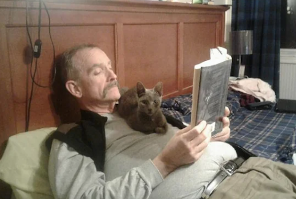 For 15 years, my husband said "no cats". Then my daughter asked for one last Christmas. Of course, he and the cat are best buds.