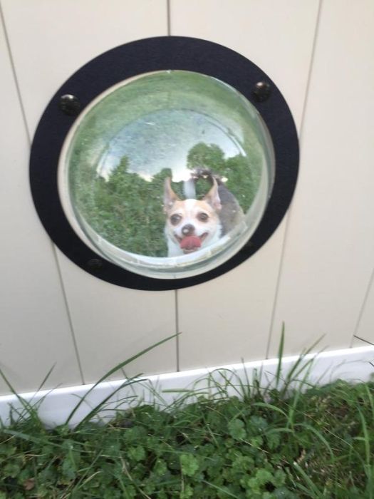 This person has a lot of dogs and sometimes the yard just isn't big enough for all of them because they want to see the outside world. They did something awesome for the dogs and built them a porthole, now they don't miss anything.